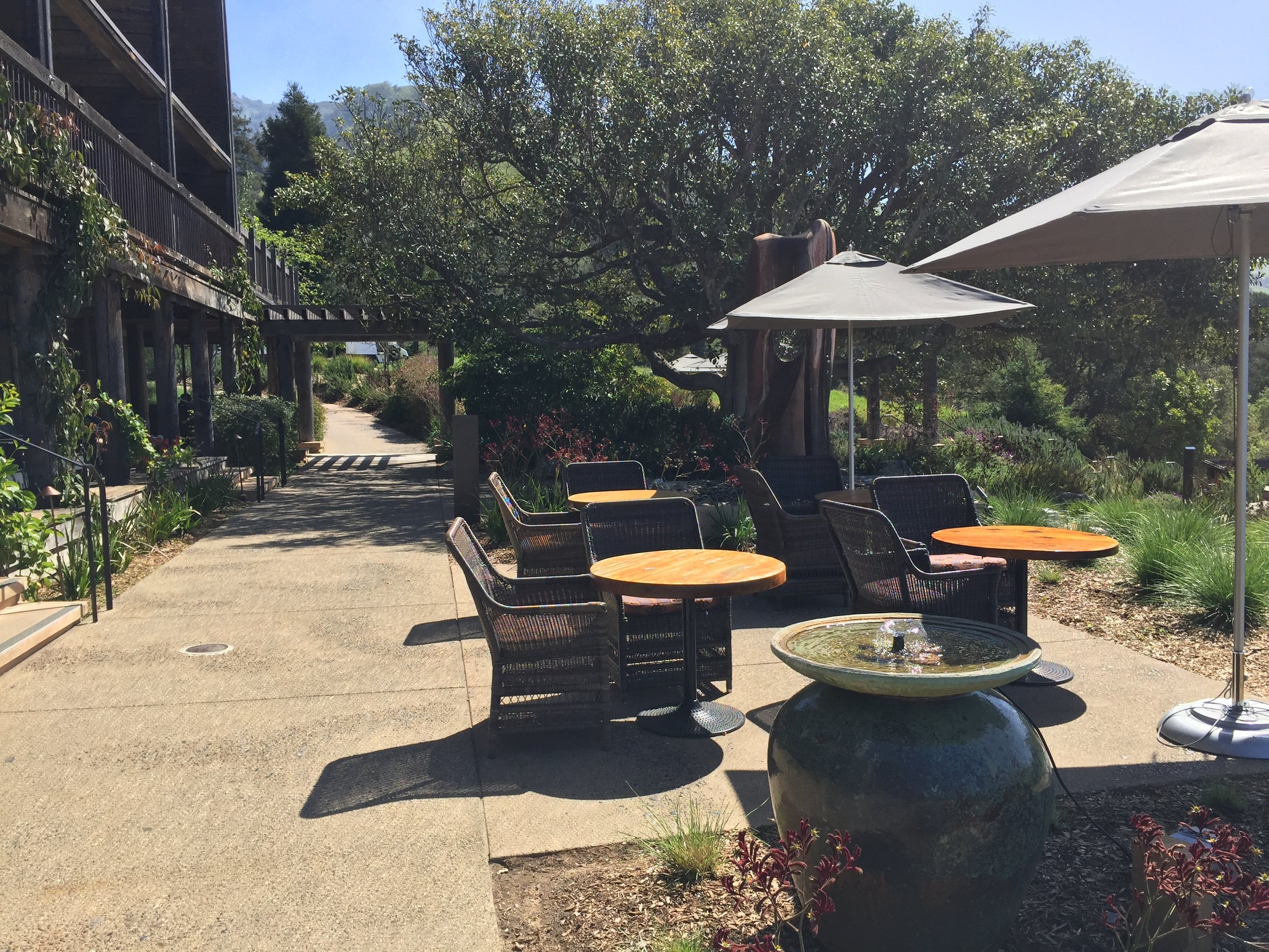 They offer several activities, all of which are worth doing. First, the morning was of the property at ten am. A civilized hour. You get a guide, always exuding the California upbeat, isn’t-it-just-glorious vibe, who takes out on the main path over to the Sur House, walking down into a small ravine with a few chairs, tables and a giant Redwood. The sense of peace settles over you. They point out the flowers, the bushes and their medicinal value.