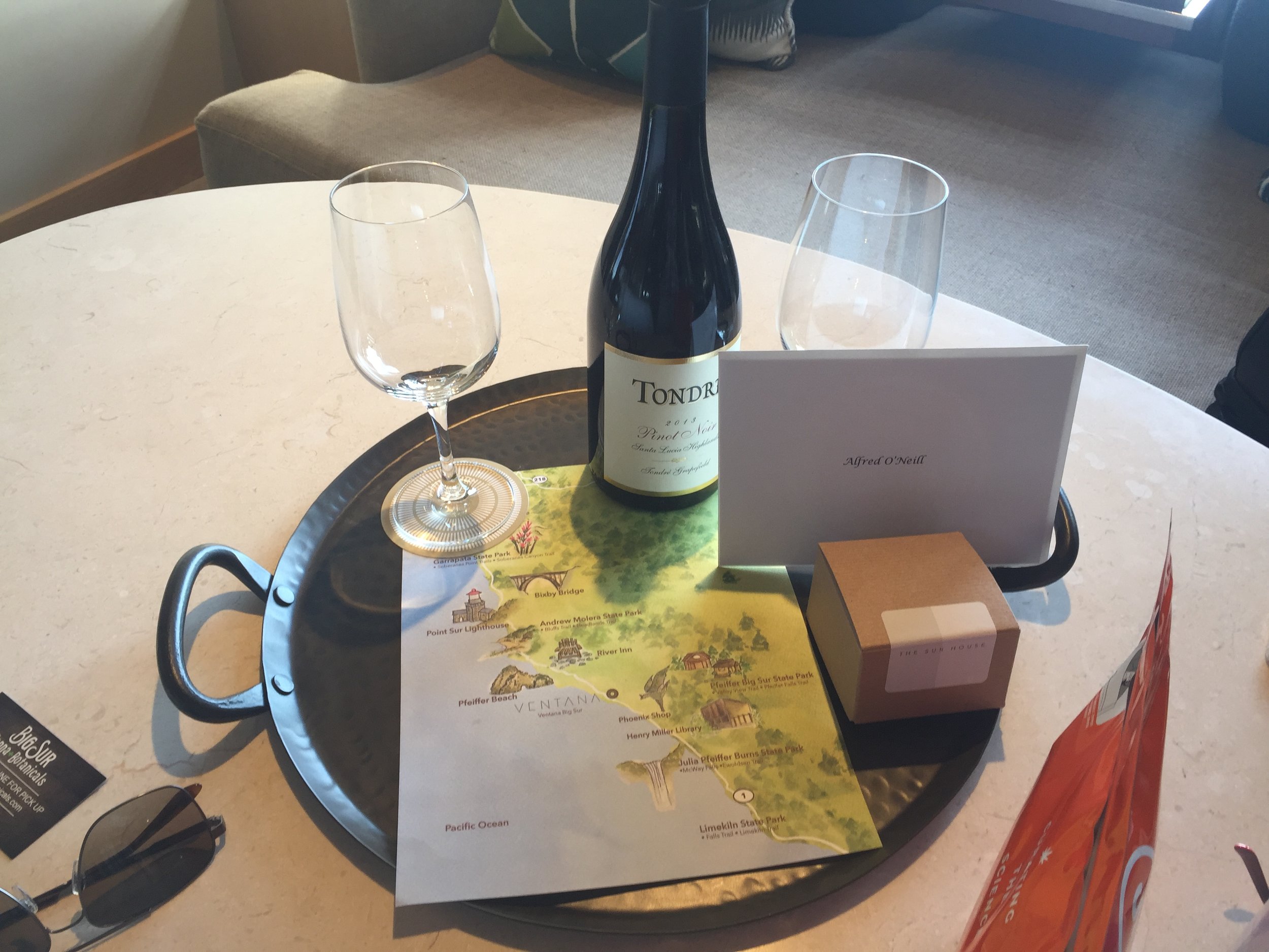 Arriving at the newly re-opened Ventana Inn, there was the usual greeting by the very warm parking staff. They put you and your luggage in a golf cart to drive up a short path to what they now call The Social Room. Really the main building.
