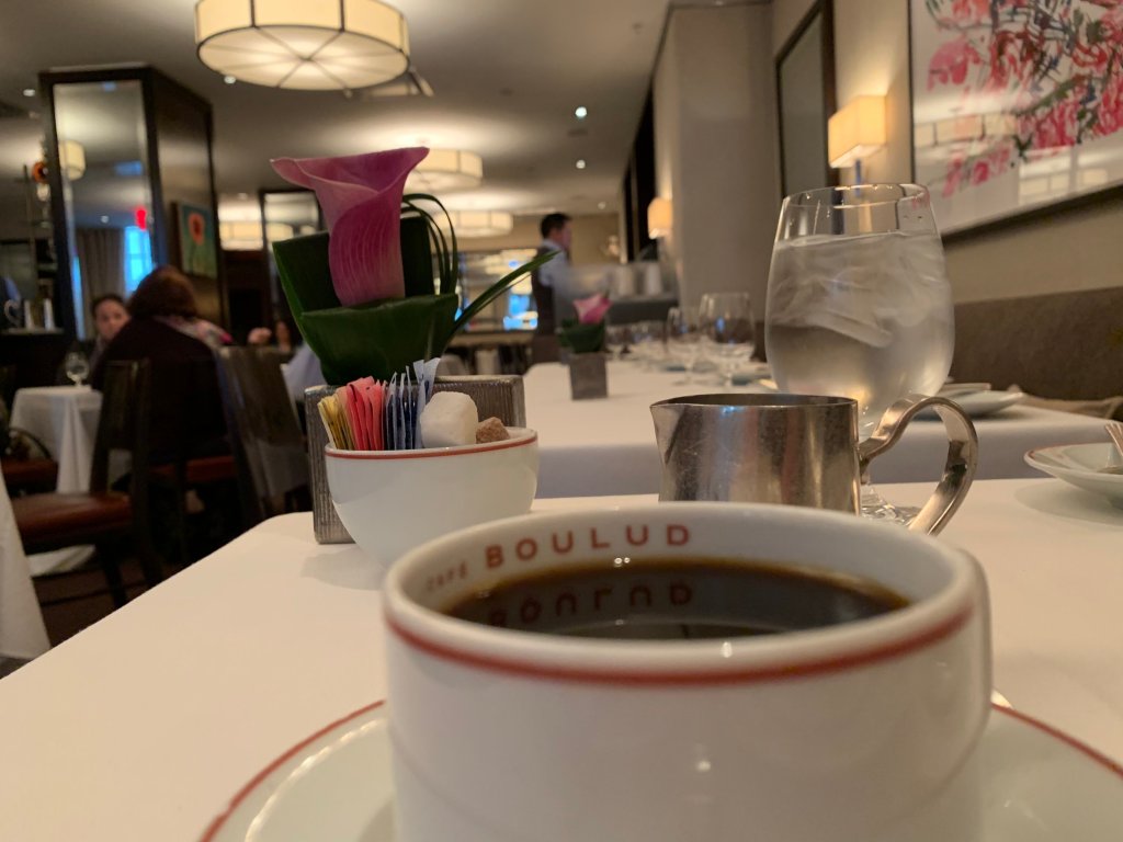 Every time we stay at the Surrey Hotel, we have at least one meal in our NY visit at Cafe Boulud. Last time, it was breakfast — with an amazingly creative croque madame encased in a perfect croissant, an omelet made perfect, and veal sausage.